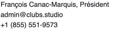 Si vous avez des questions ou des préoccupations concernant la Politique, ou si vous souhaitez déposer une plainte, veuillez contacter notre responsable de la protection des informations personnelles à l'adresse suivante : info@clubs.studio.